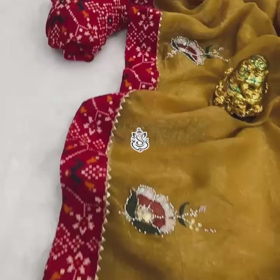 Premium Soft Organza Dori Embroidery Work Golden Saree