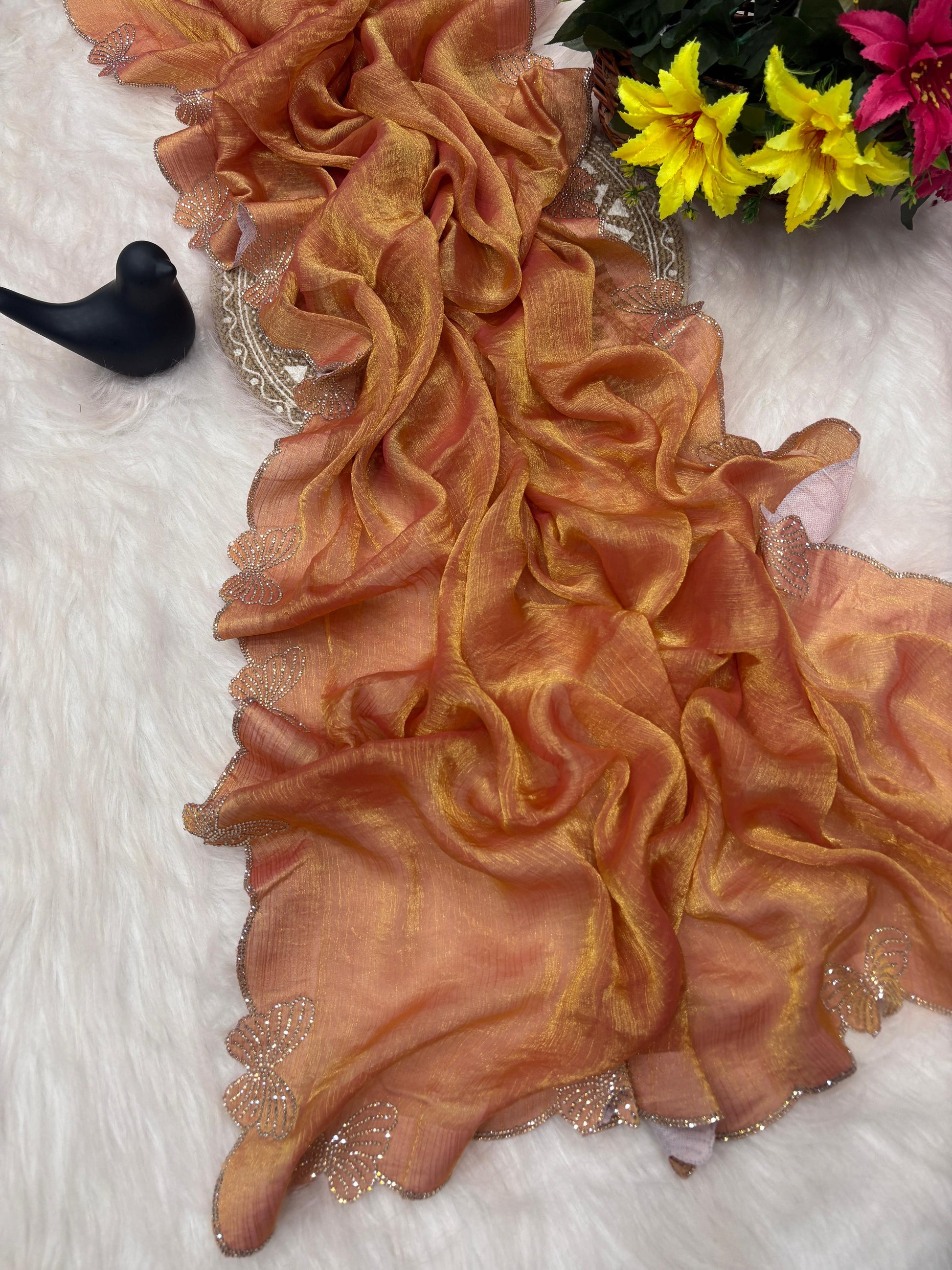 Beautiful Fandy Chffion Sikk Saree With Butterfly Conecpt
