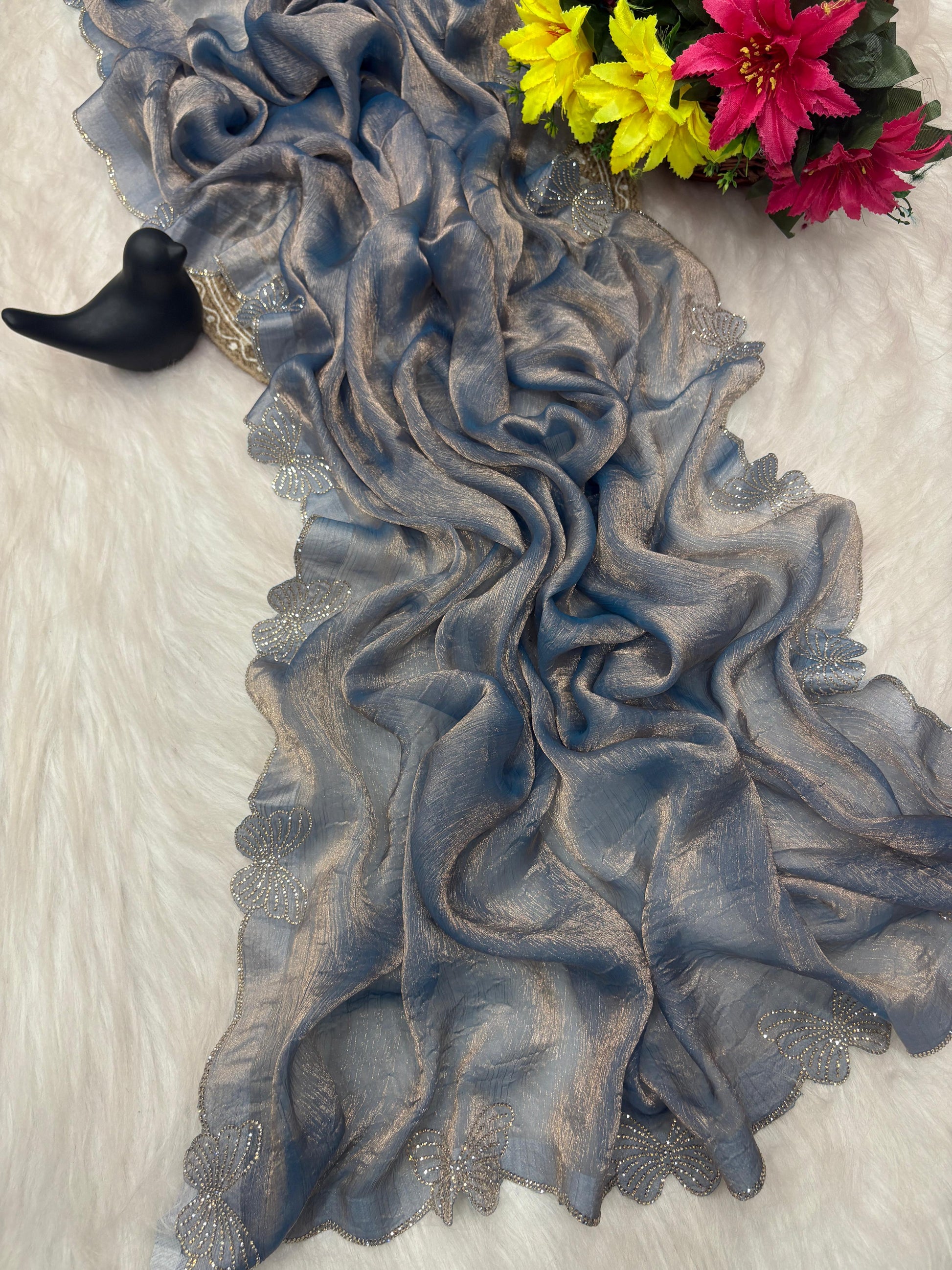 Fendi Space Silk Saree with All-Over Jarkan Work