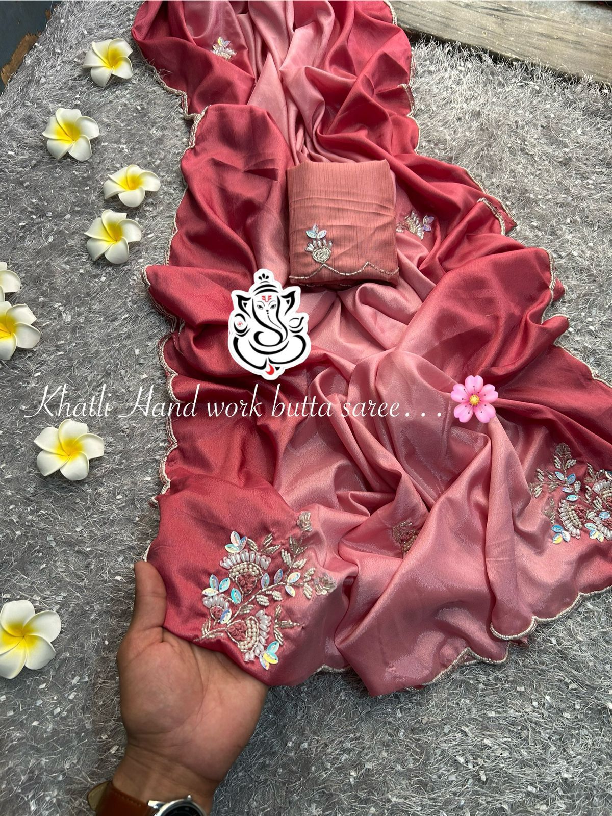 Beautiful pending color shade wedding wear saree with khatli Hand work butta in pallu nd Moti cut work Boder Designe nd Butti all in saree..*