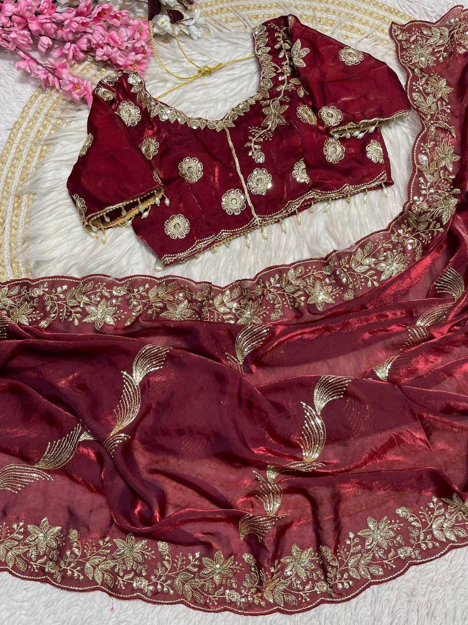 Premium Soft Organza Dori Embroidery Work Golden Saree