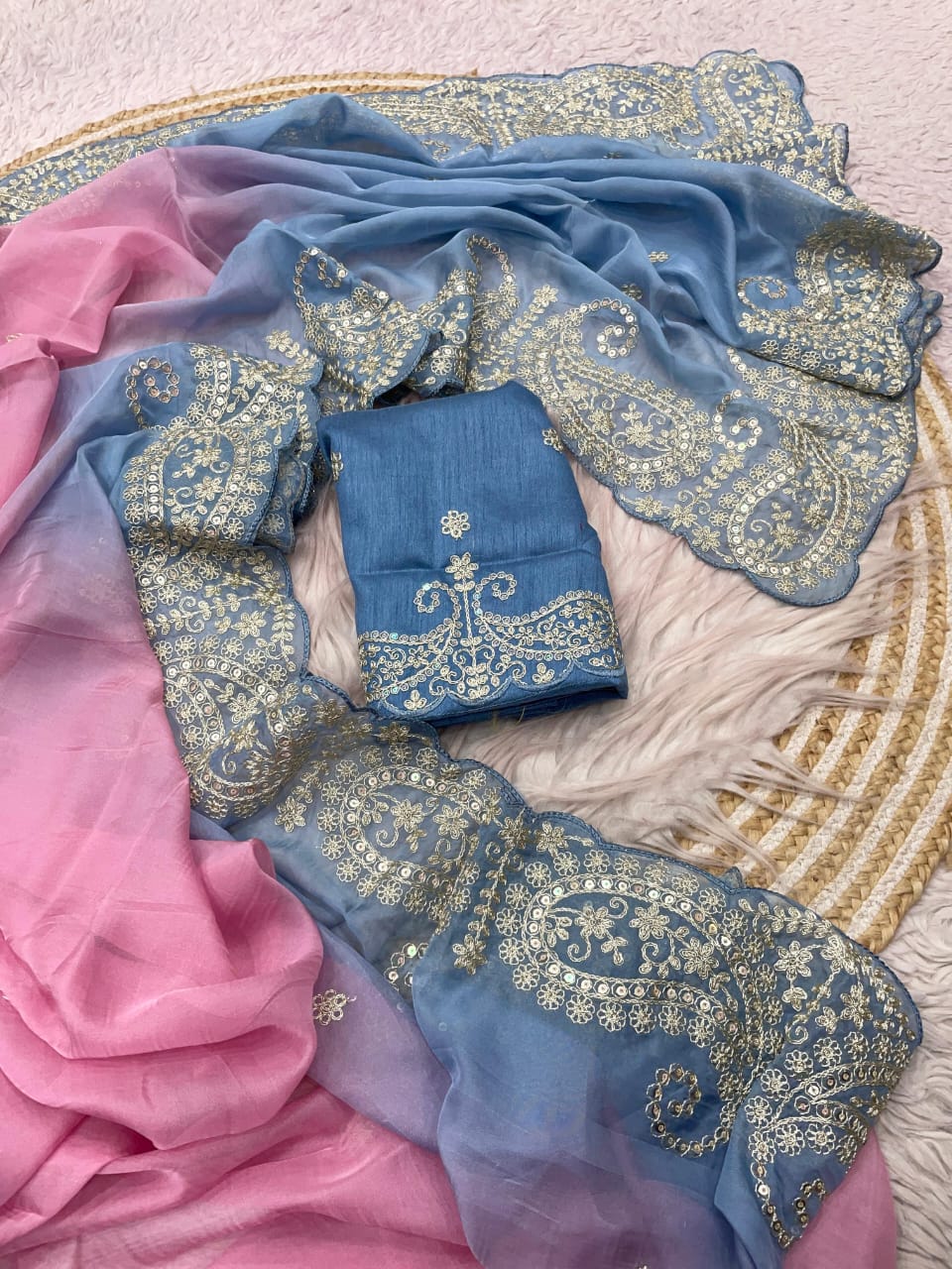 Fabric : Mono Banglori With Coding sequence embroidery blouse ( Unstitch blouse) This saree will Make you feel like a celebrity Whenever You wear it