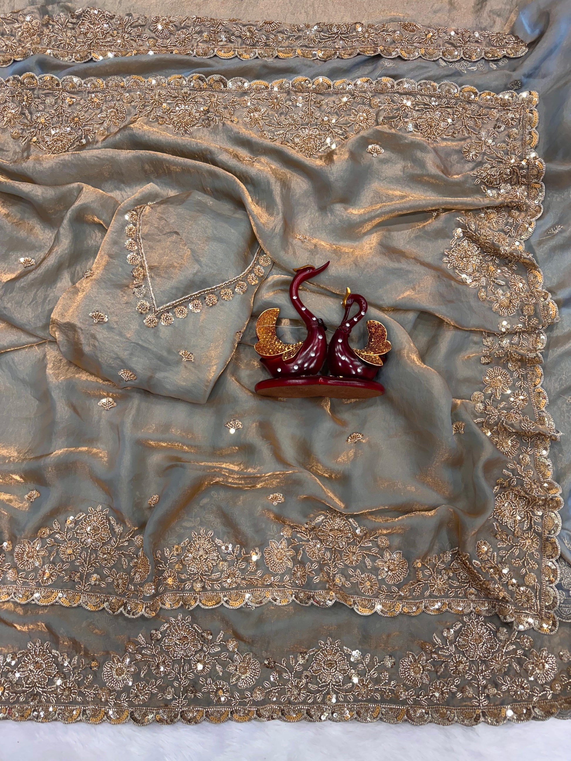 Fendi Space Silk Saree with All-Over Jarkan Work