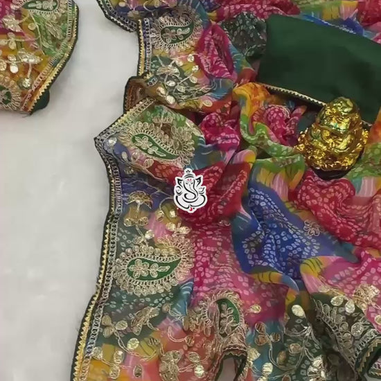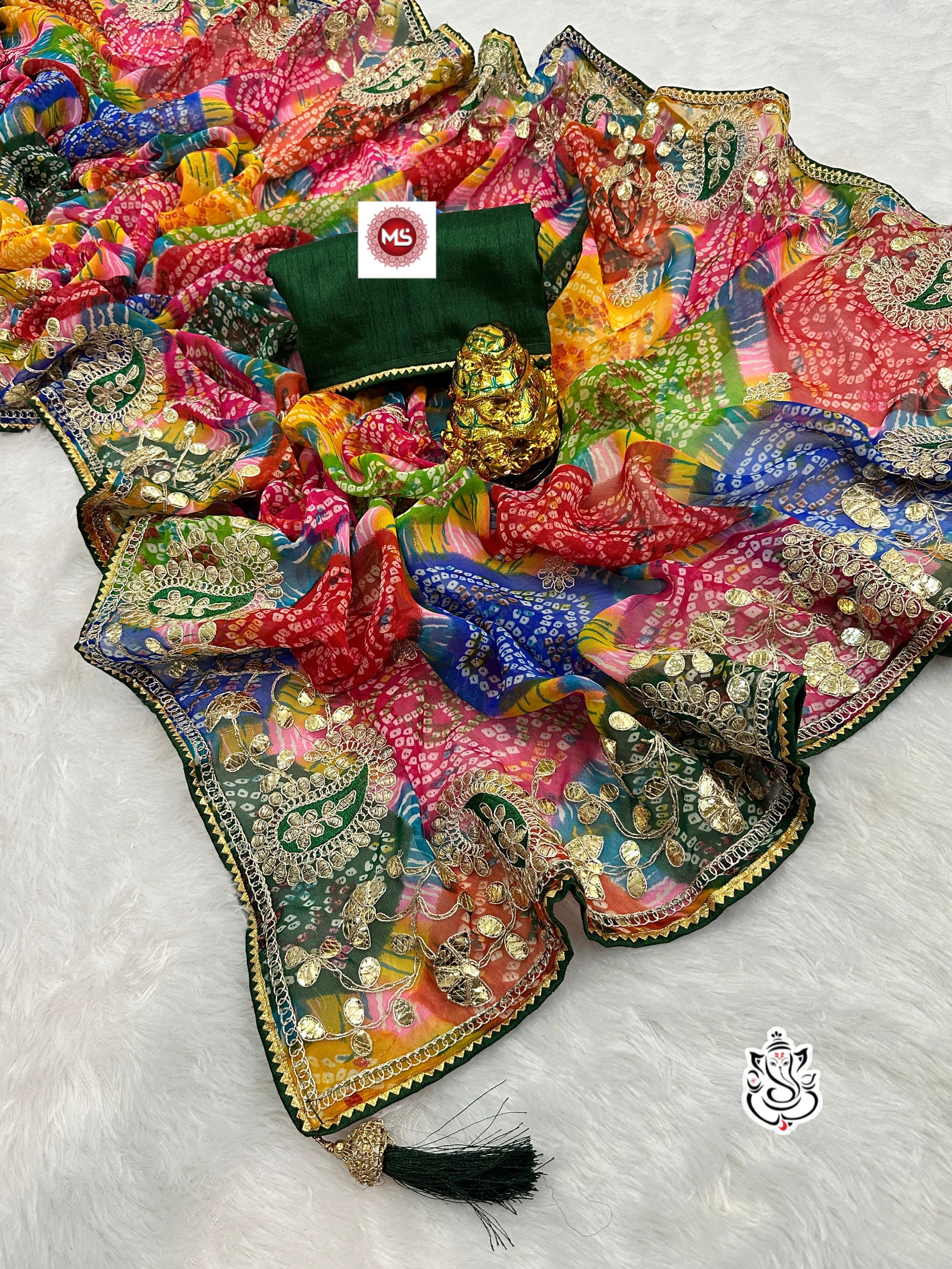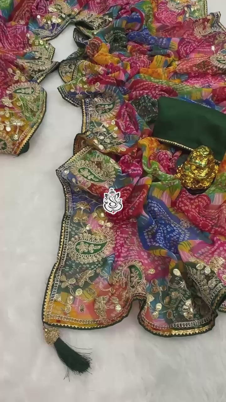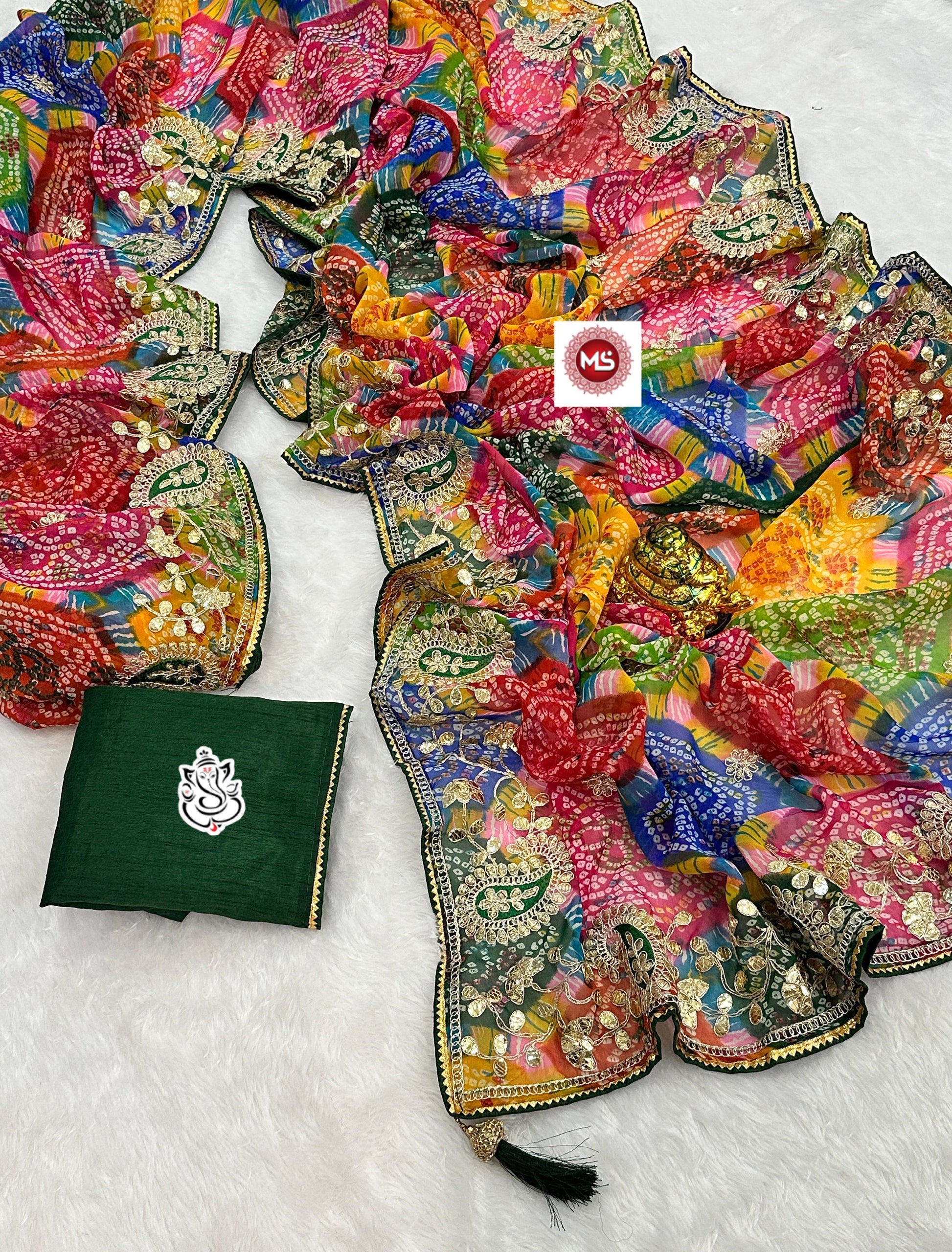 Saree fabric- 60 gram Georgette Bhandhini Pachrangi print saree with heavy gota patti c.pallu and fancy FUMKA