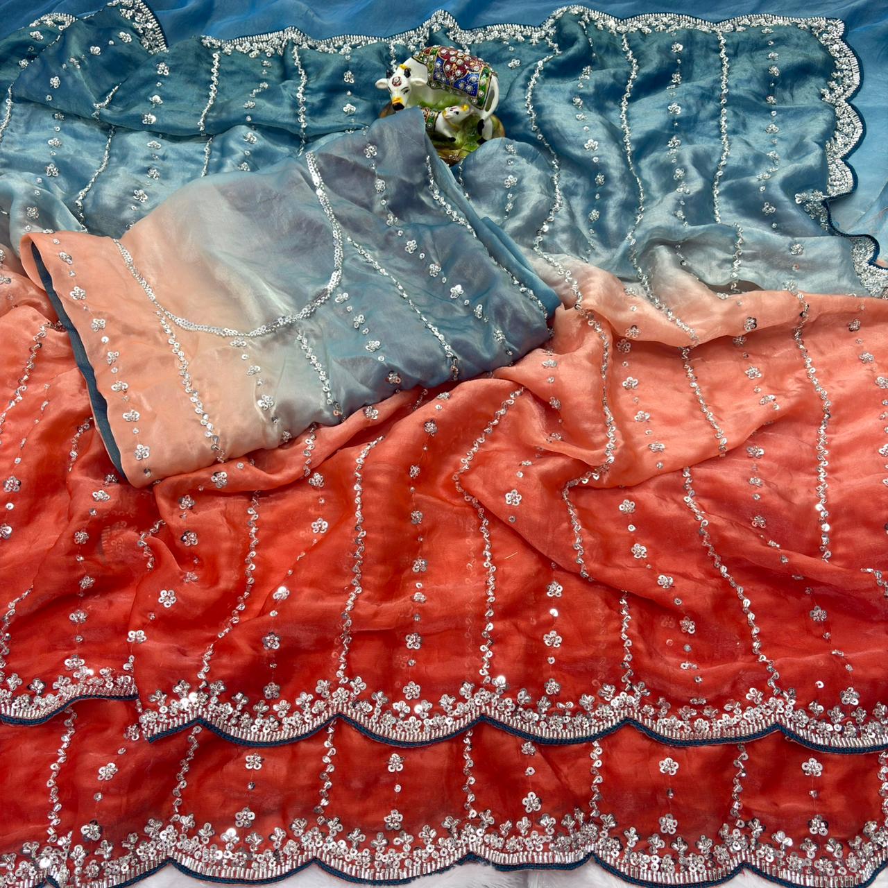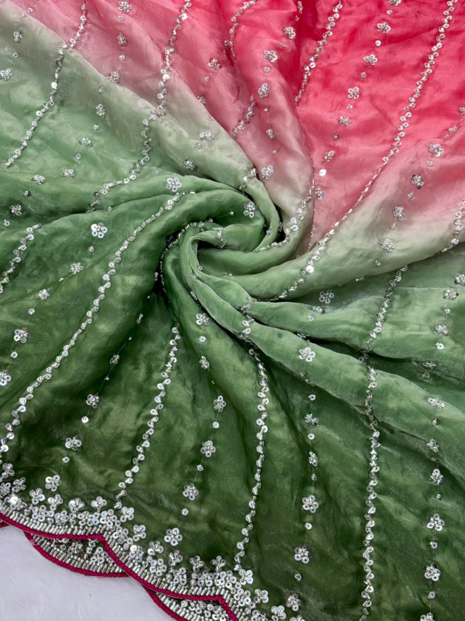 Fendy Satin Saree with 3mm Sequin Embroidery & Heavy Border