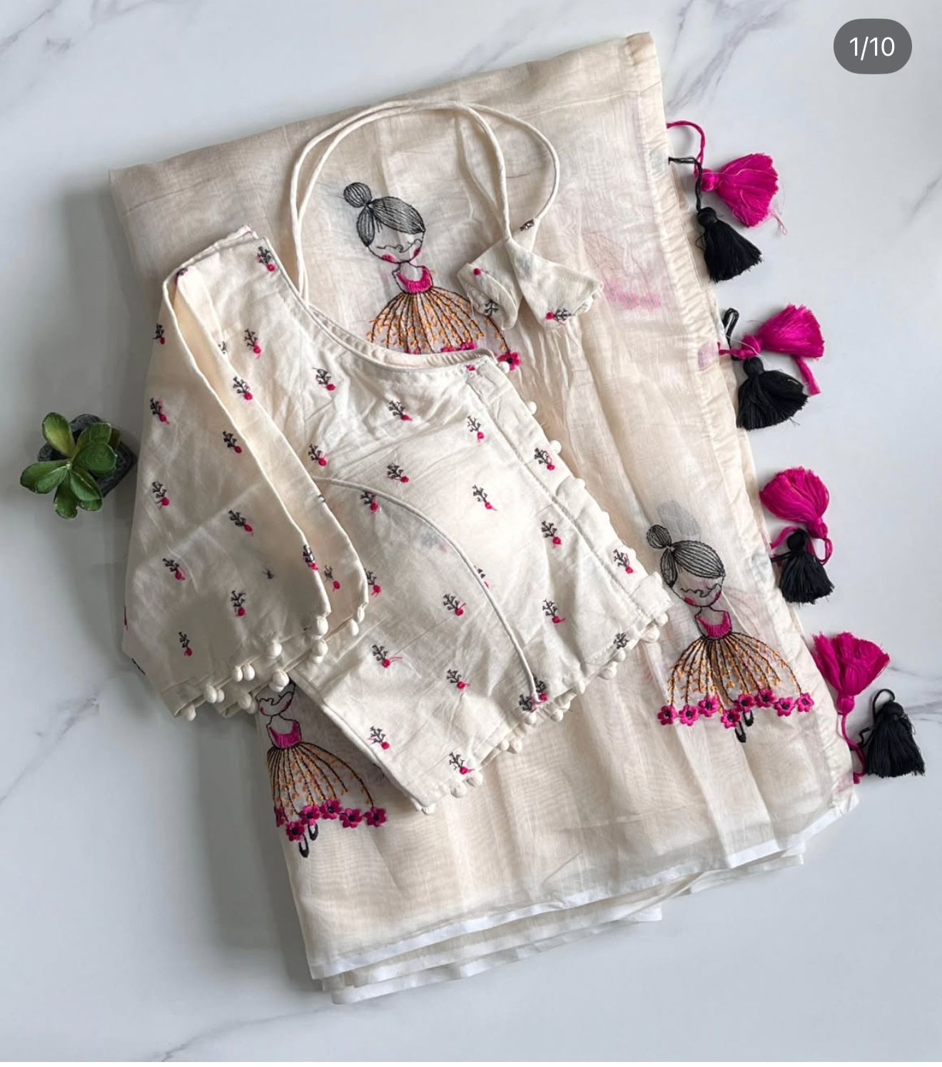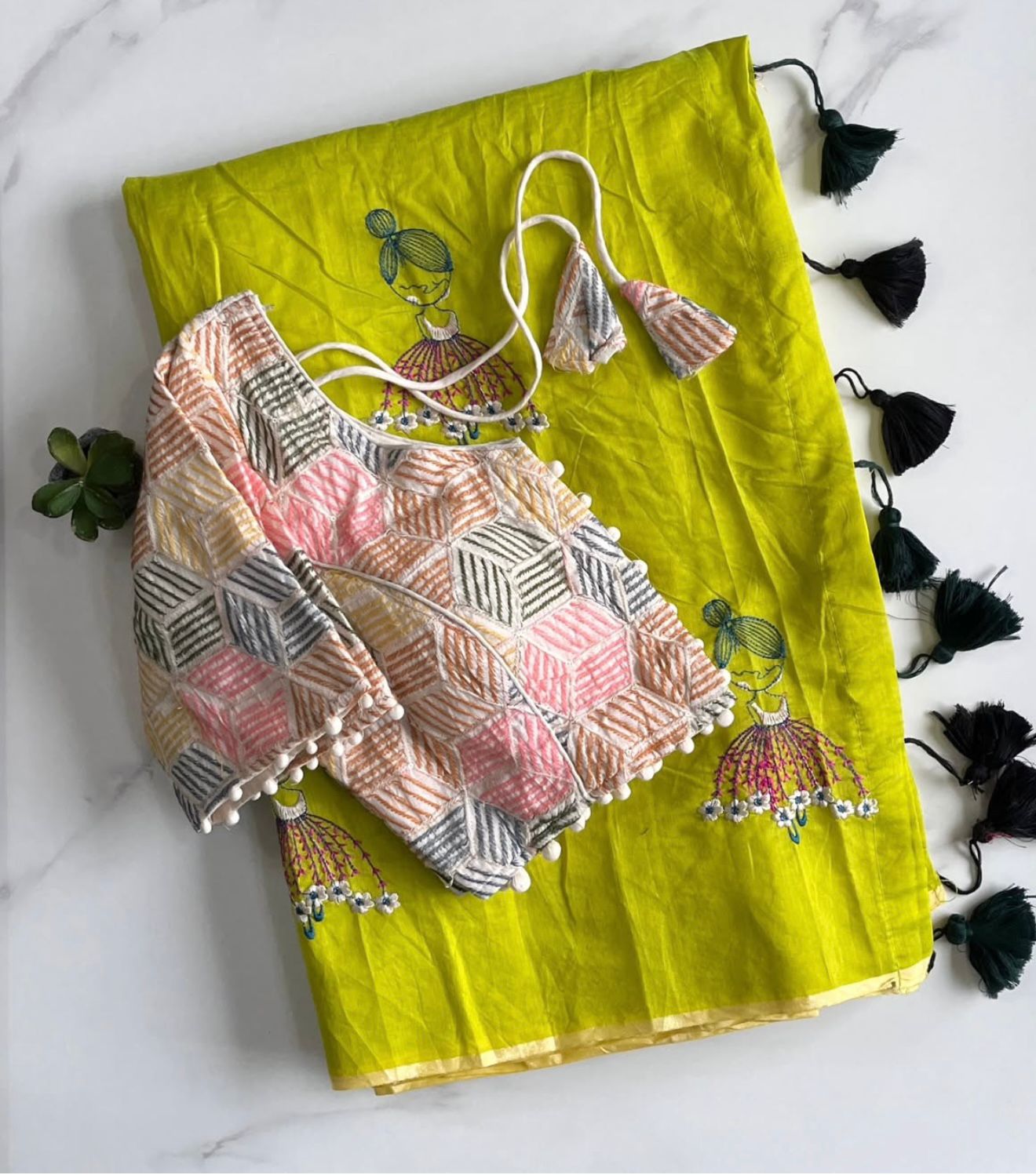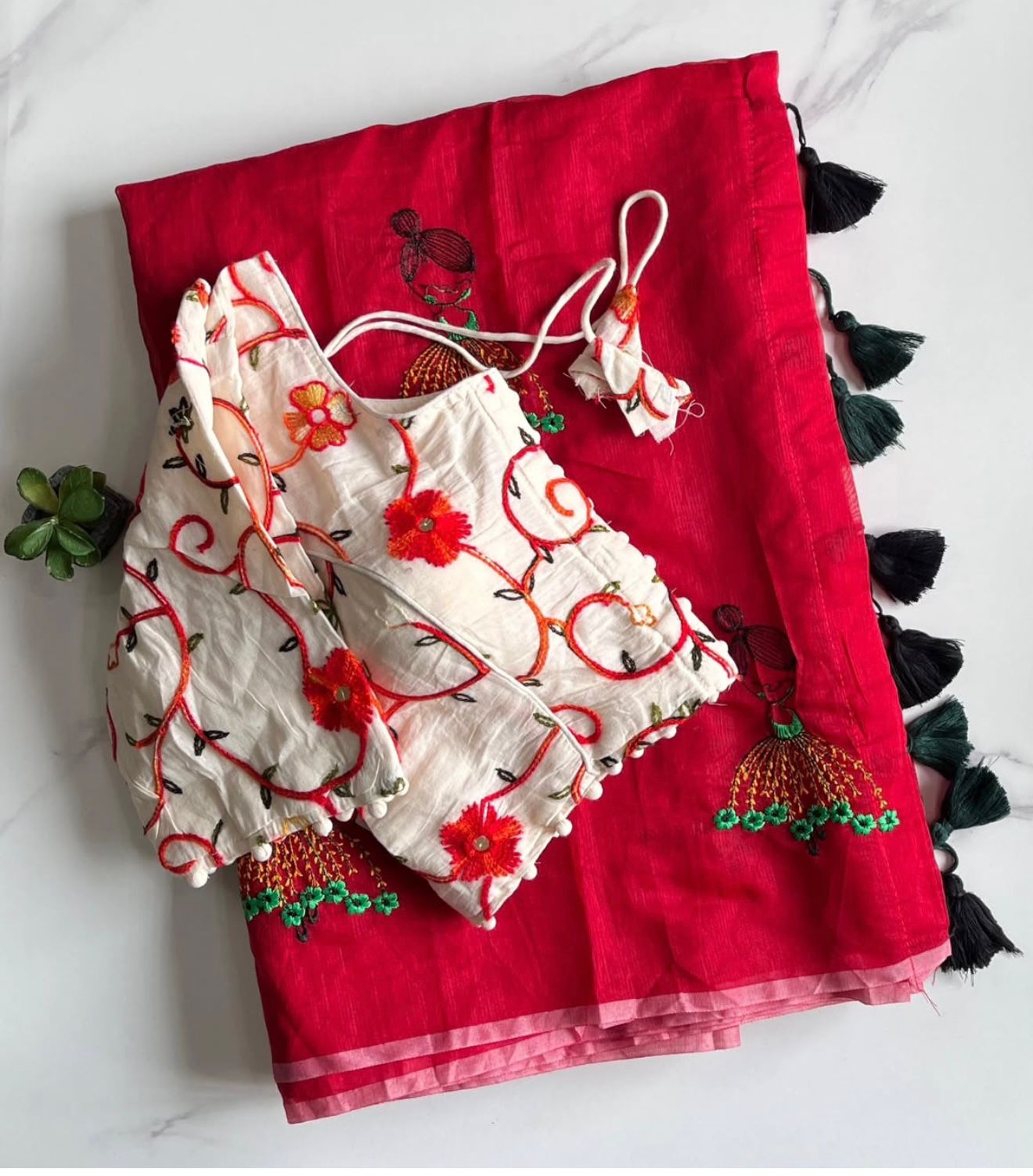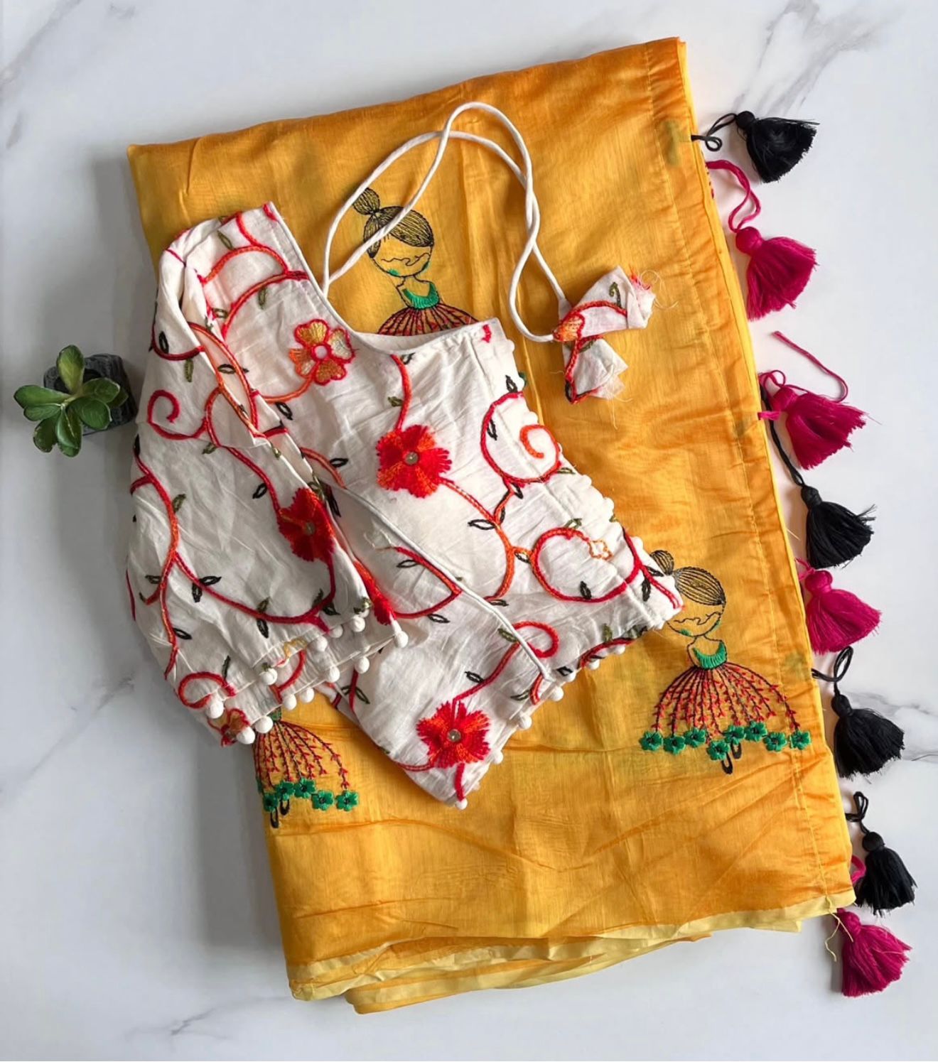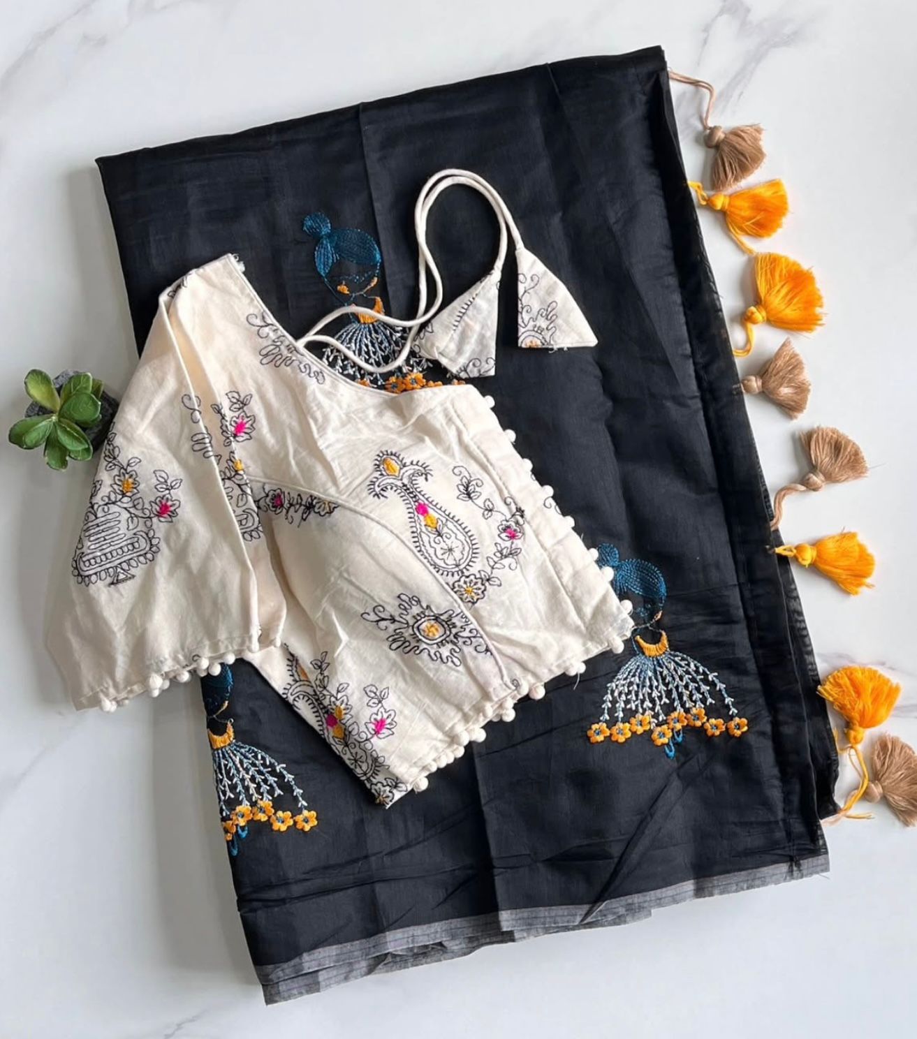Cotton tassels attached on saree