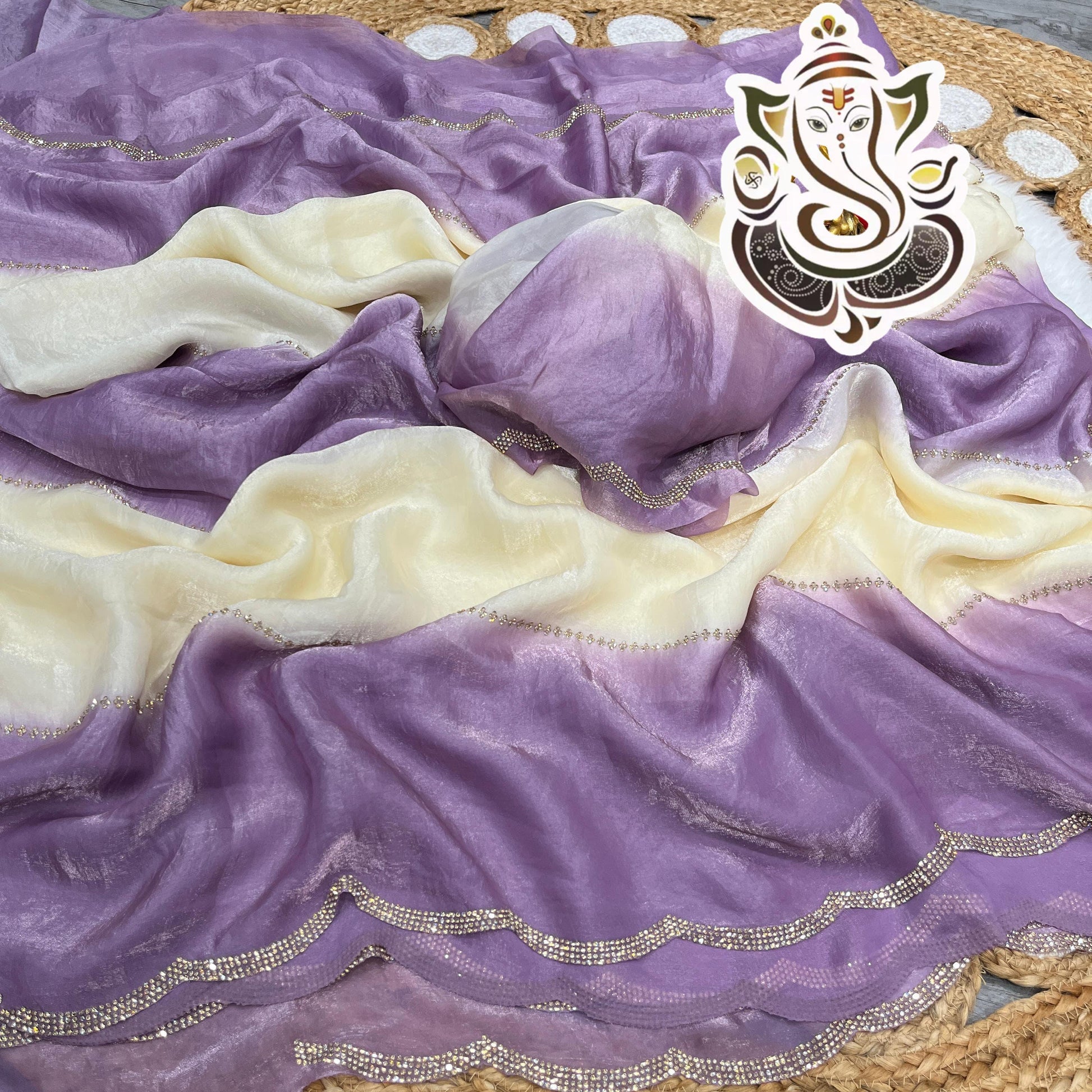 New Partywear Soft Jimmy Chu Silk Heavy Zarkan Diamond Work Fancy Designer Saree With Blouse Piece