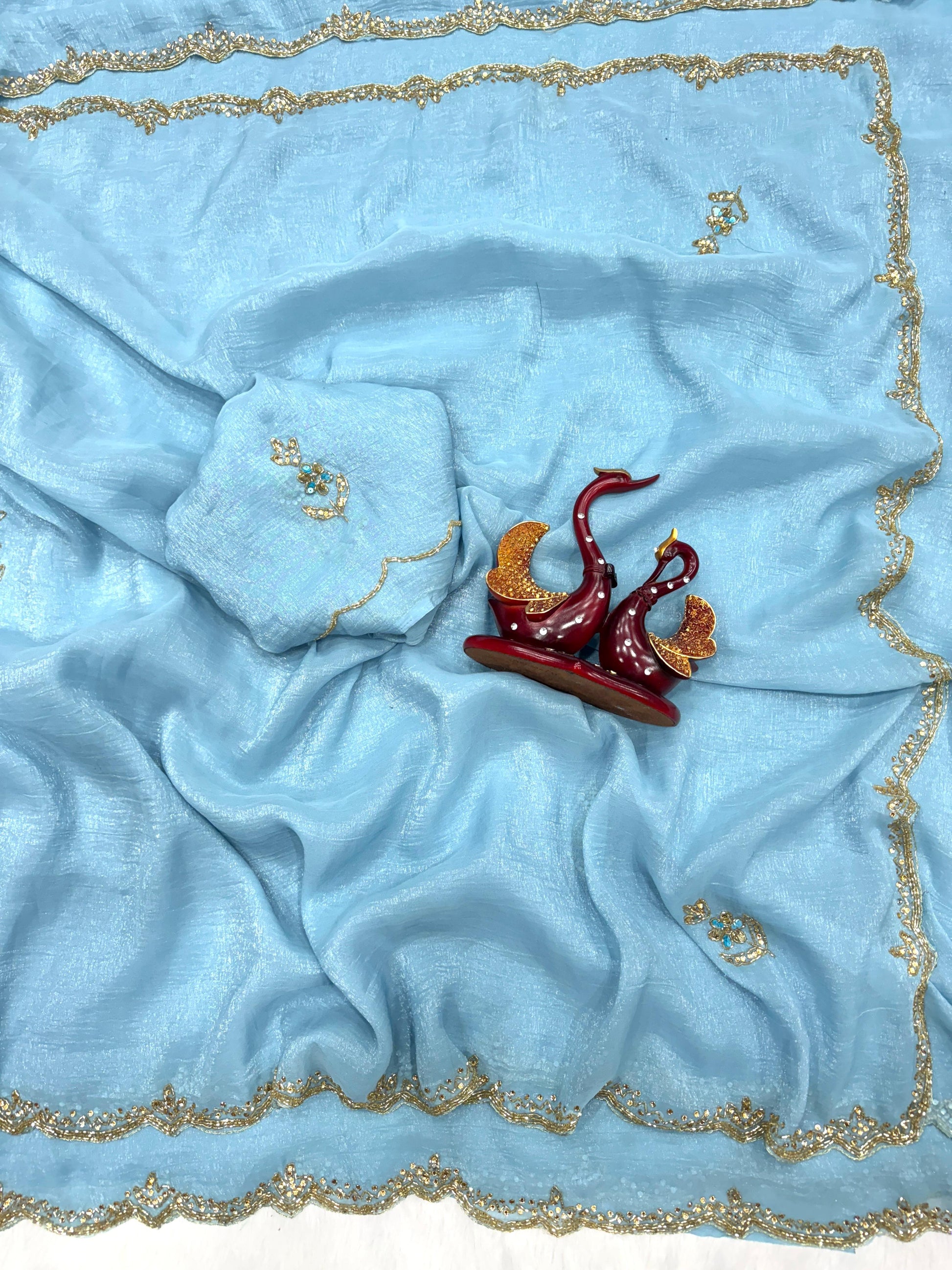 ๐ Comes with a handwork blouse in matching Pixcel Crush fabric, designed to perfectly complement the saree and elevate your overall look.