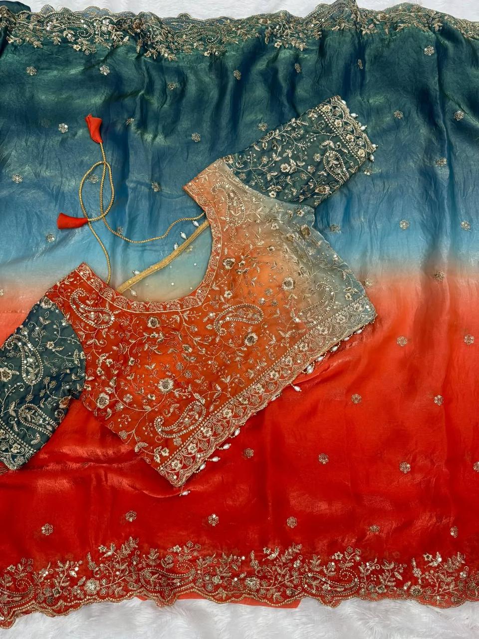 👚 Paired with a fully stitched heavy blouse, detailed with jhal work embroidery, sequins design, stylish net back pattern, and fancy tassels for a premium designer finish.