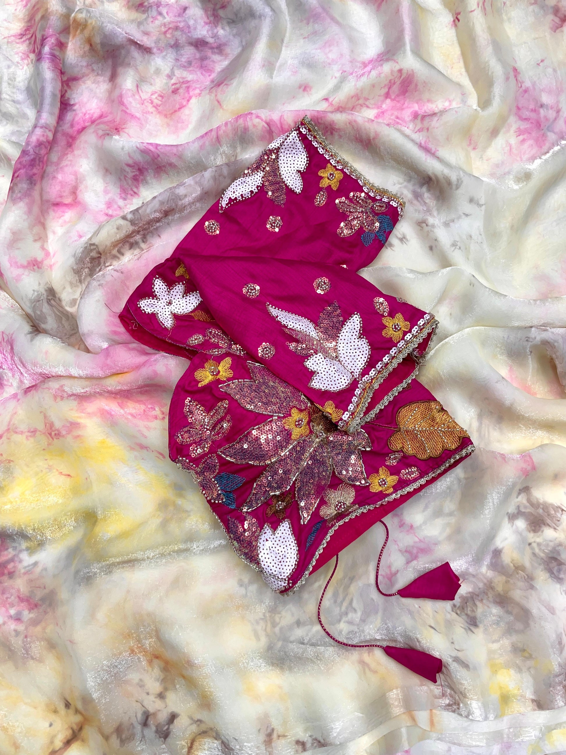 Premium Space Silk Saree with Discharge Print & Jalpari Blouse