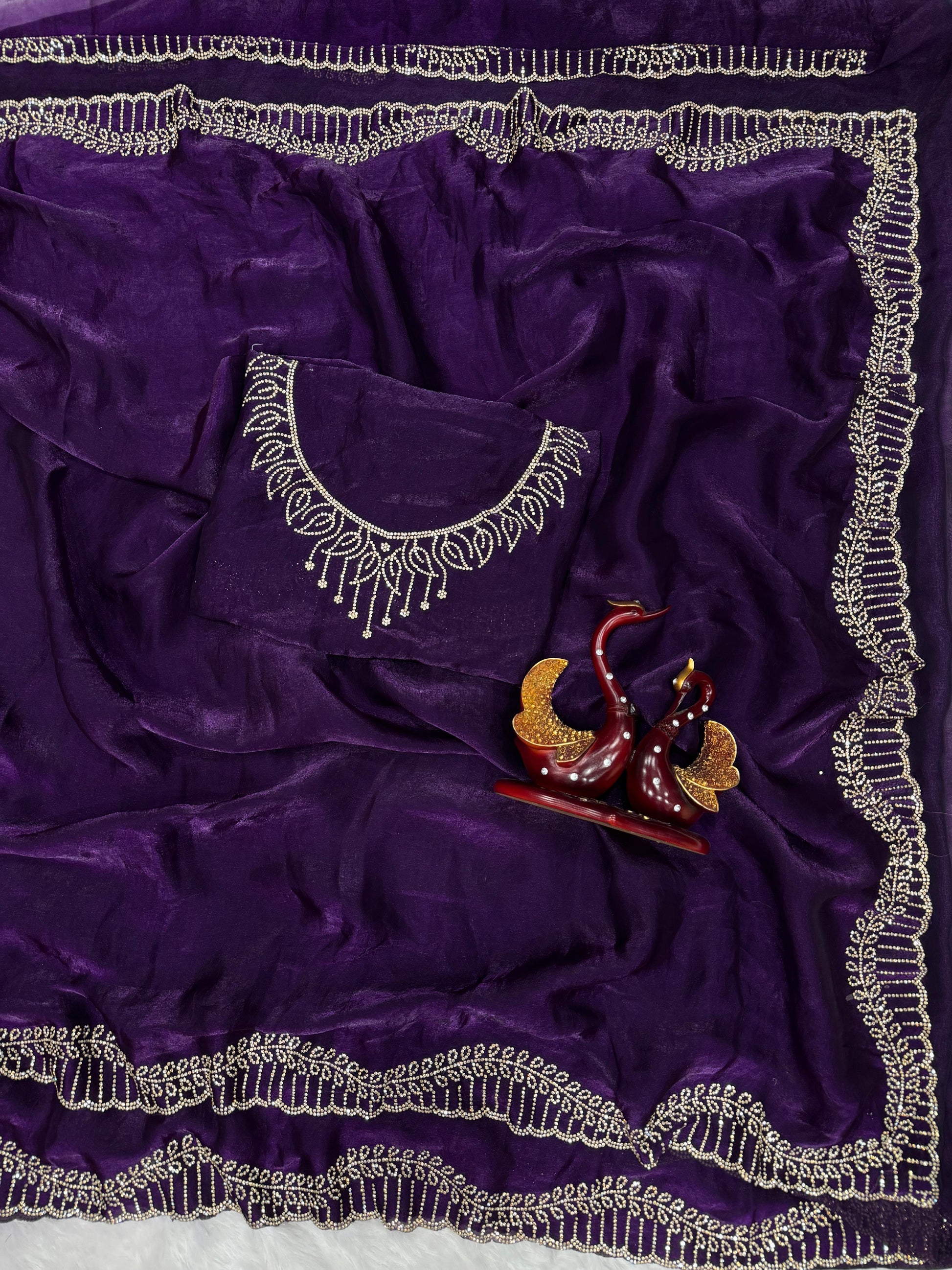 Premium Space Silk Saree with Original Jarkhan Diamond Work