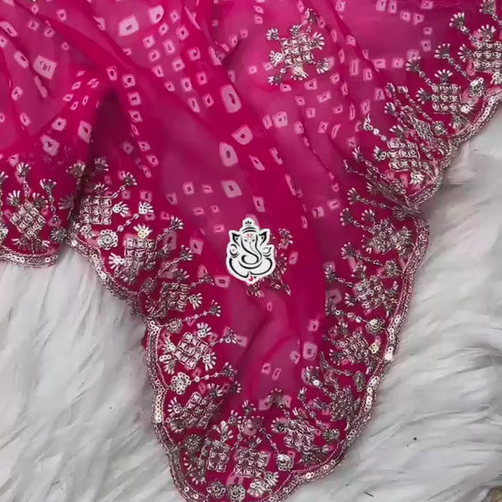 soft c*c Georgette bandej saree with beautiful c-pallu sequence thread work & butti in whole saree
